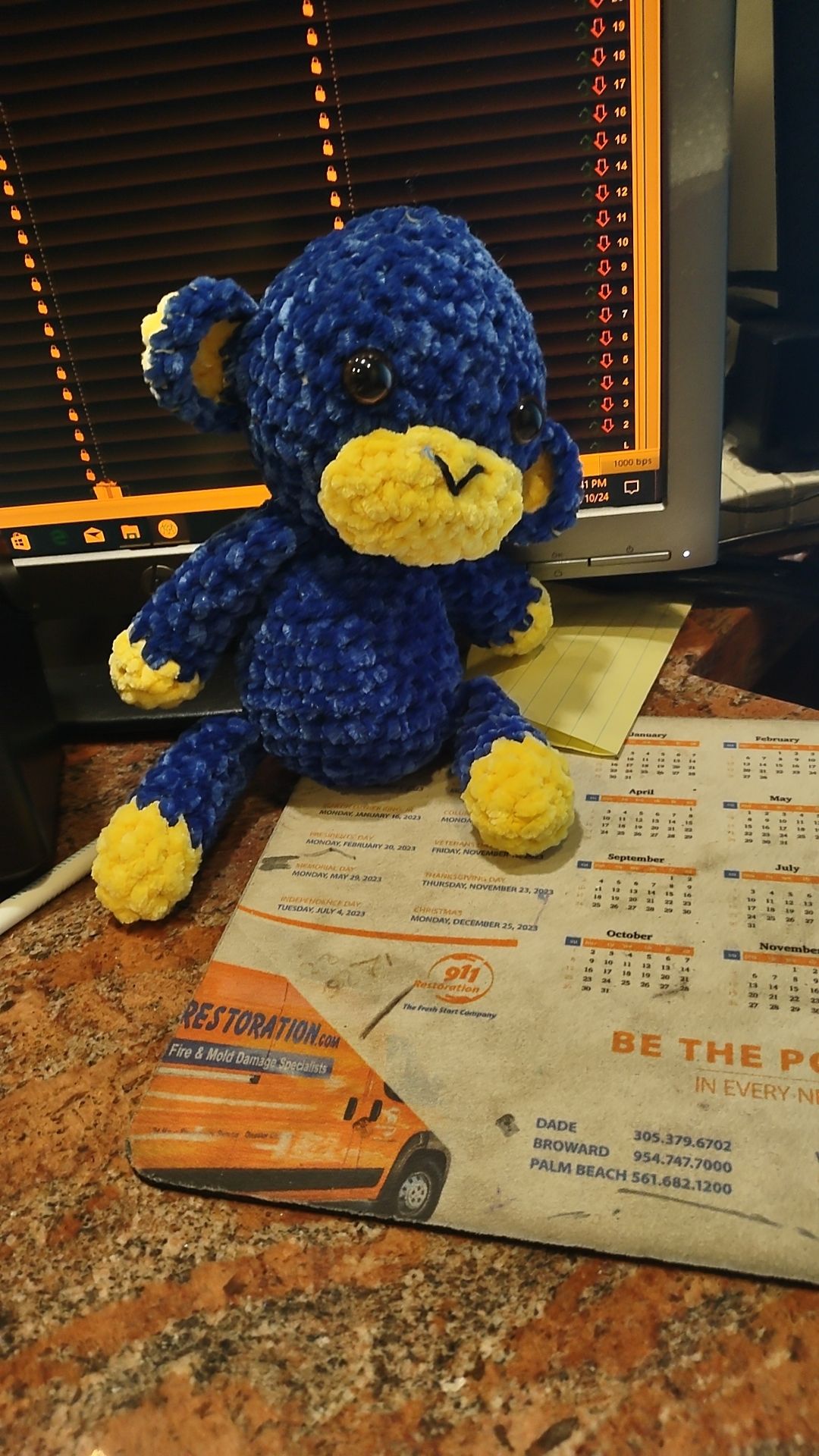 “It’s Matt the Monkey, here to keep you company.” She says with a big smile.